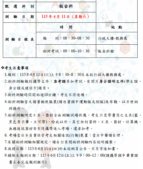 術科測驗准考證資訊:點此開啟